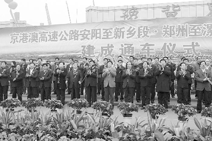 閱讀提示 昨日上午9時許,在河南河北兩省交界處的豫冀界收費站旁,隨著沖天的禮花騰空而起,京港澳高速公路安陽至新鄉(xiāng)段、鄭州至漯河段改擴建工程宣布竣工通車,這兩段極為重要的進京要道都從四車道加寬為八車道,通車能力提高一倍。