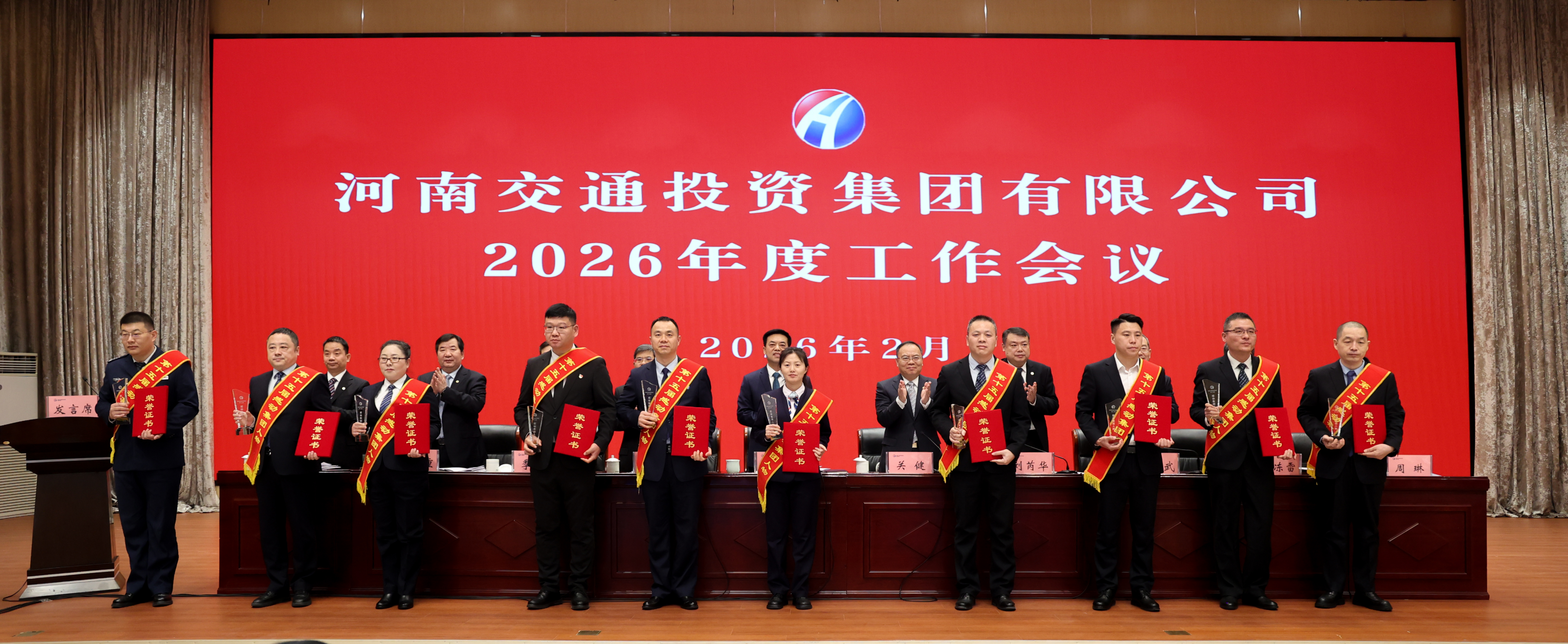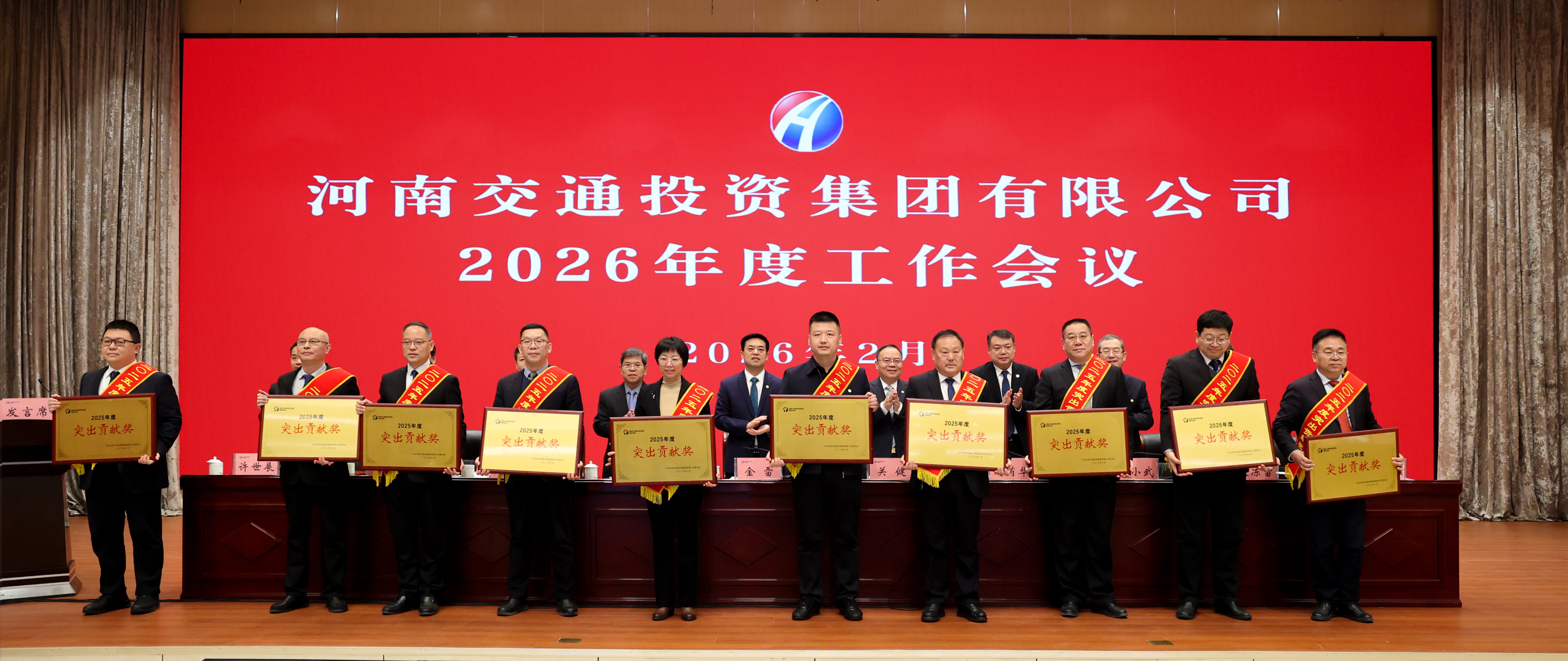 會(huì)議傳達(dá)了2026年全國(guó)交通運(yùn)輸工作會(huì)議、全省交通運(yùn)輸工作會(huì)議精神,發(fā)布了集團(tuán)蟬聯(lián)“河南服務(wù)業(yè)企業(yè)100強(qiáng)”第1位等十大新聞事件,表彰了在八大突出貢獻(xiàn)事項(xiàng)中發(fā)揮關(guān)鍵突出作用的26個(gè)獲獎(jiǎng)集體、獲得第十五屆“感動(dòng)集團(tuán)人物”稱號(hào)的10名員工。4個(gè)單位作典型發(fā)言及表態(tài)發(fā)言。集團(tuán)所屬單位及總部部門代表向集團(tuán)黨委書記、董事長(zhǎng)金雷遞交2026年度工作目標(biāo)責(zé)任書。